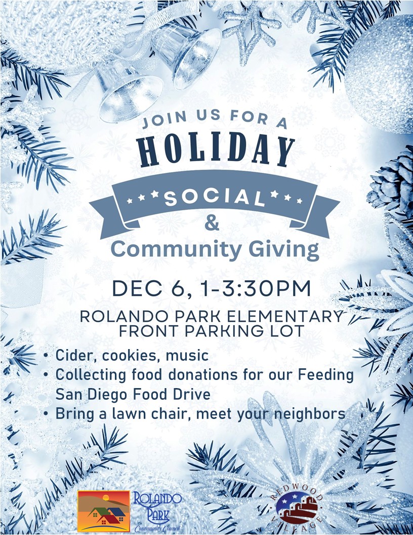 Saturday, December 6th, 1-3:30 pm, we’ll be holding our annual Holiday Social and Community Giving event.
