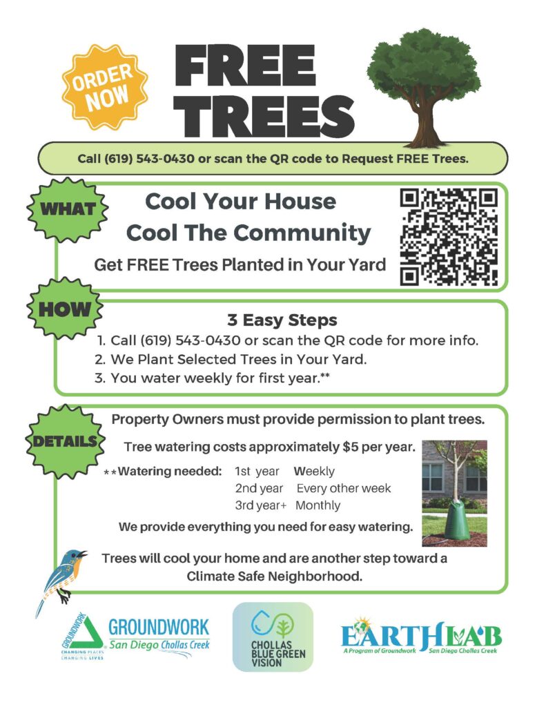 However, our community partner, Groundwork San Diego-Chollas Creek does have a free tree program! You can complete the form at https://www.jotform.com/241778522845062