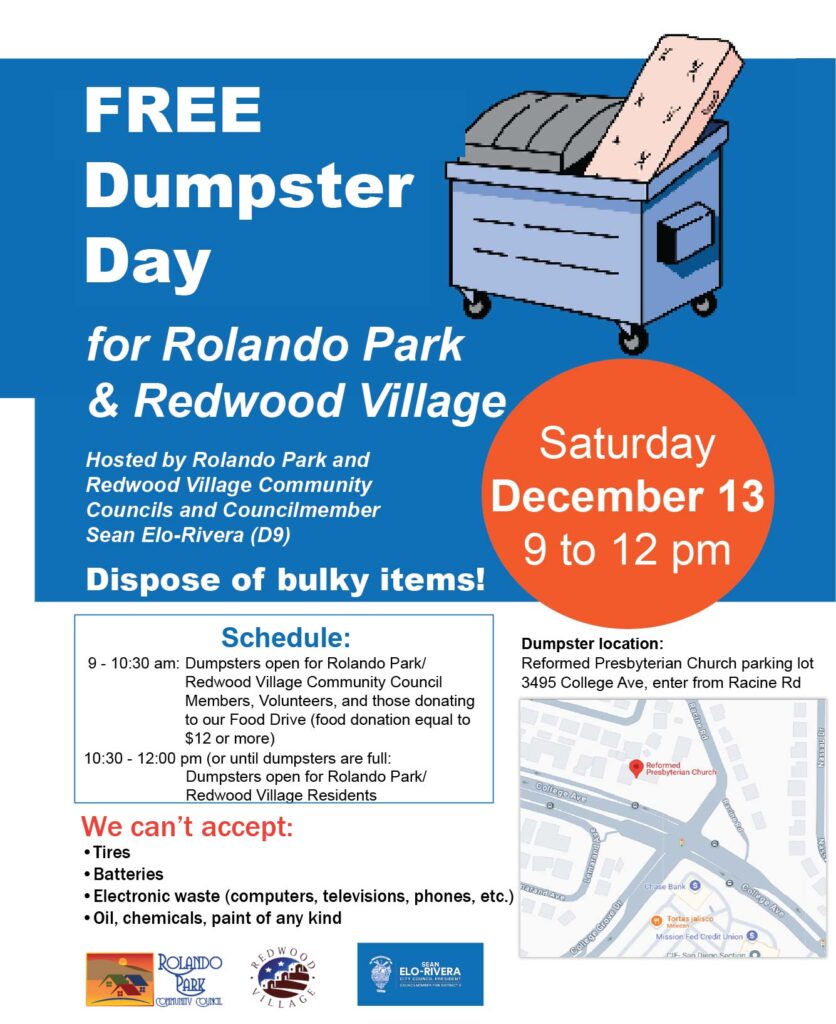 9 to 10:30 am: Rolando Park/Redwood Village Community Council members, our volunteers, and those making a food donation (equal to $12 or more) for our Feeding San Diego Food Drive
