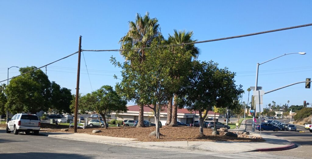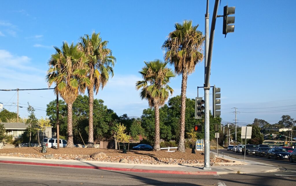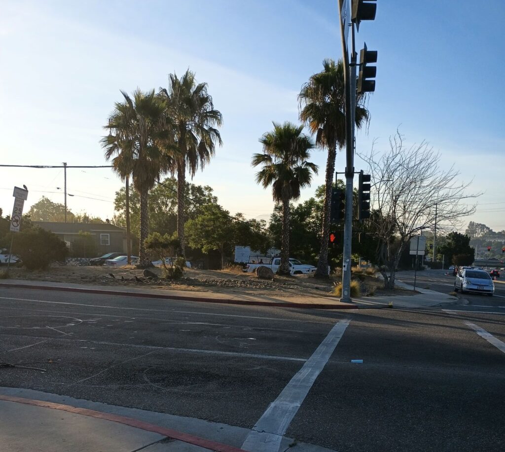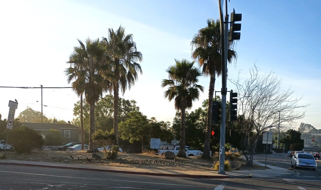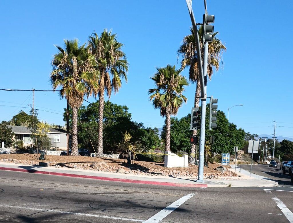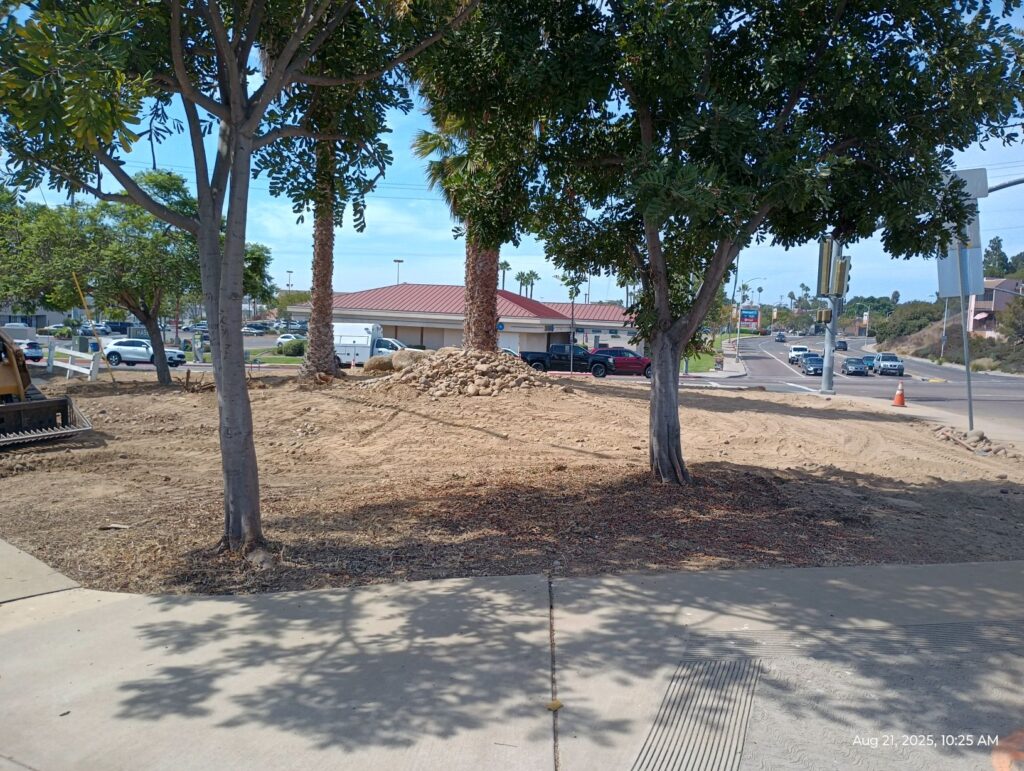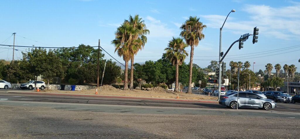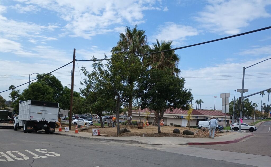 This picture was shot this morning at the corner of College Ave/College Grove, aka the pocket park, now to be known as the Rolando Park Gateway. For the next few weeks, this corner will look different almost daily and we’ll be sharing the progress.