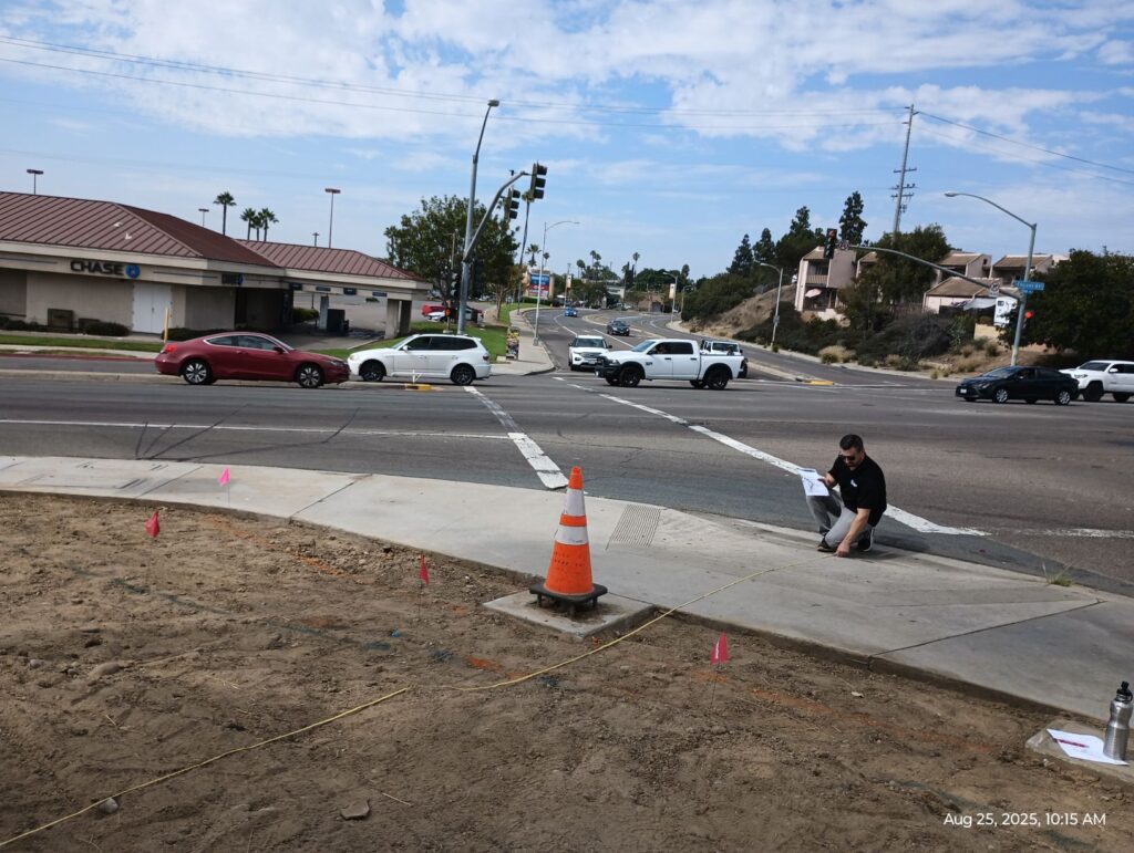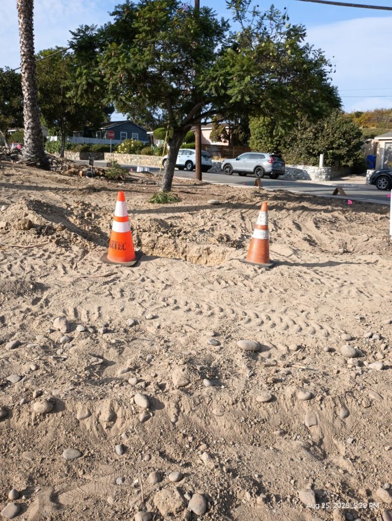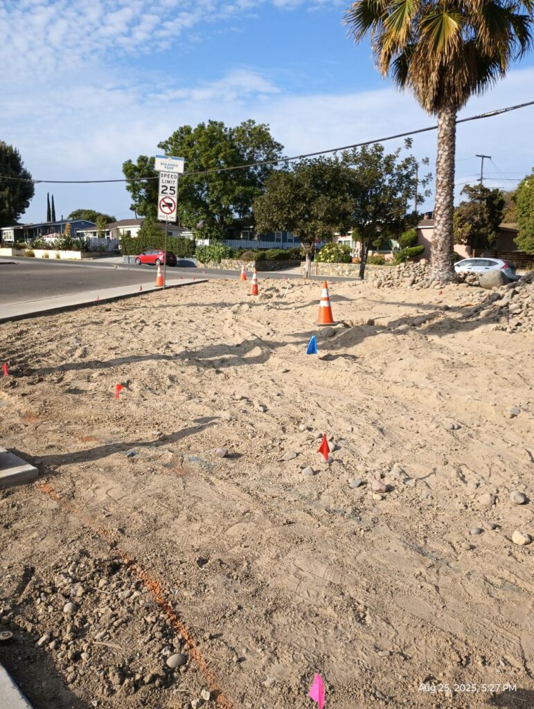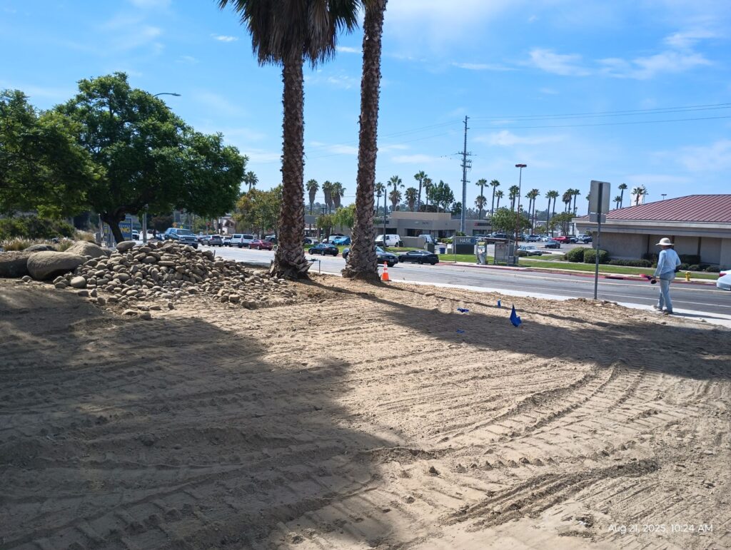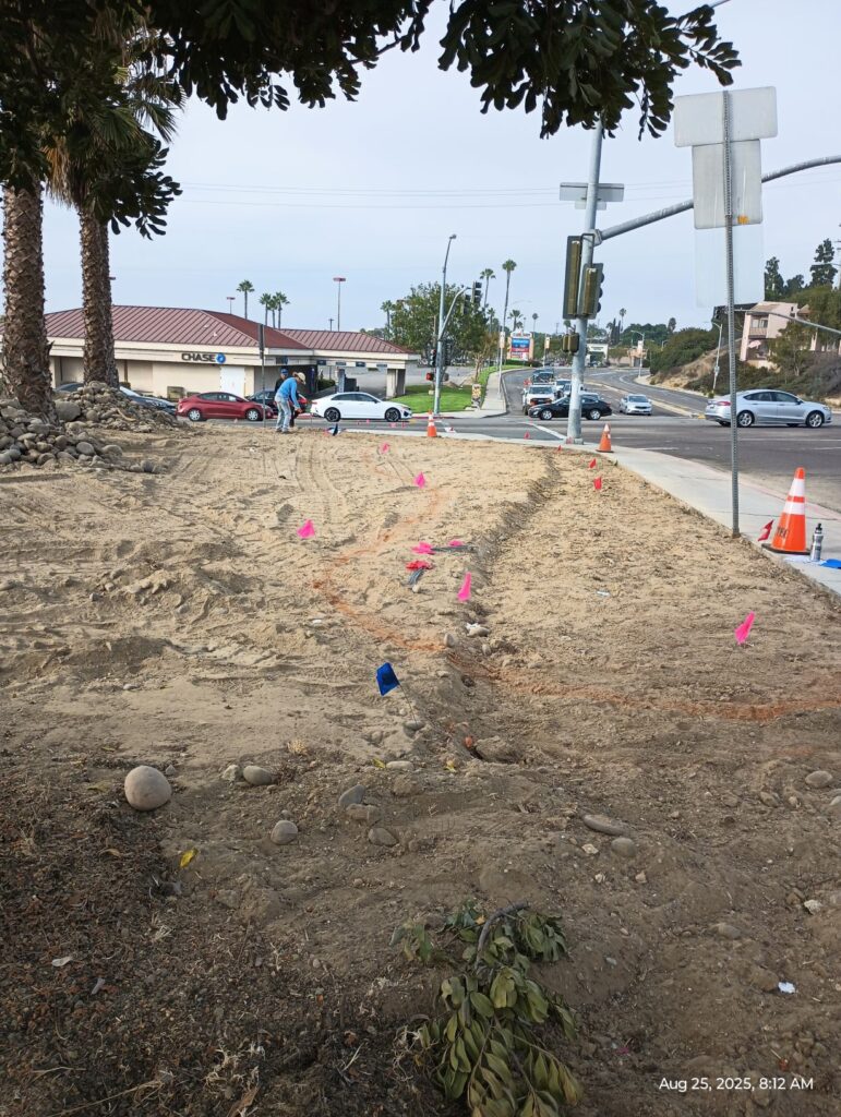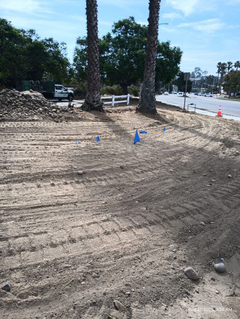The landscape designer roughly marked the area for the monument sign (pics with blue flags) and the City of San Diego inspection team also paid a visit.