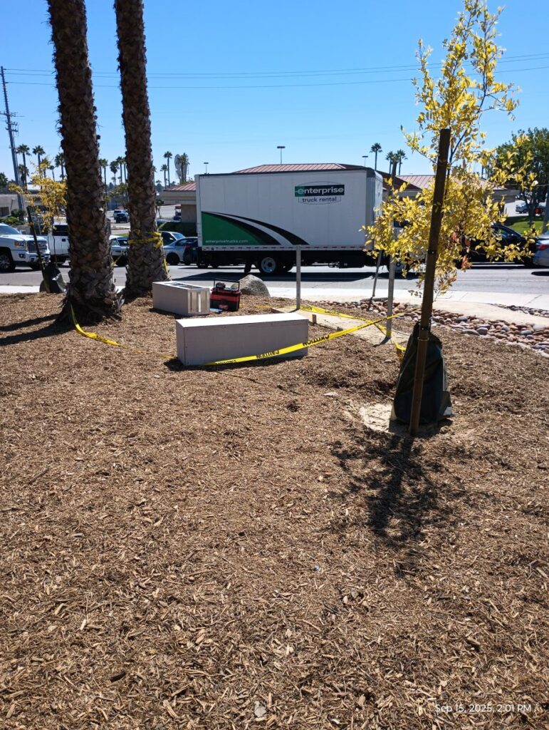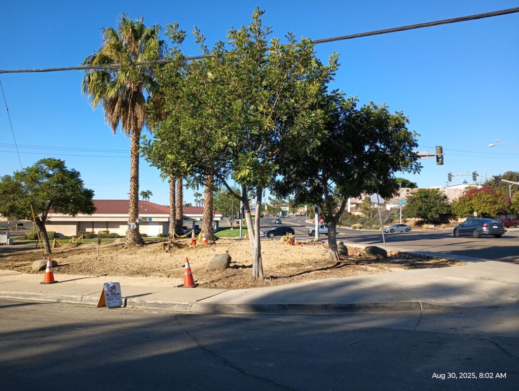 The schedule has been slightly changed; the trees will be planted on Tuesday and mulch goes down on Wednesday. After that, city inspectors will be back to give final approval on the landscaping part of this project and work can then start on the monument sign.