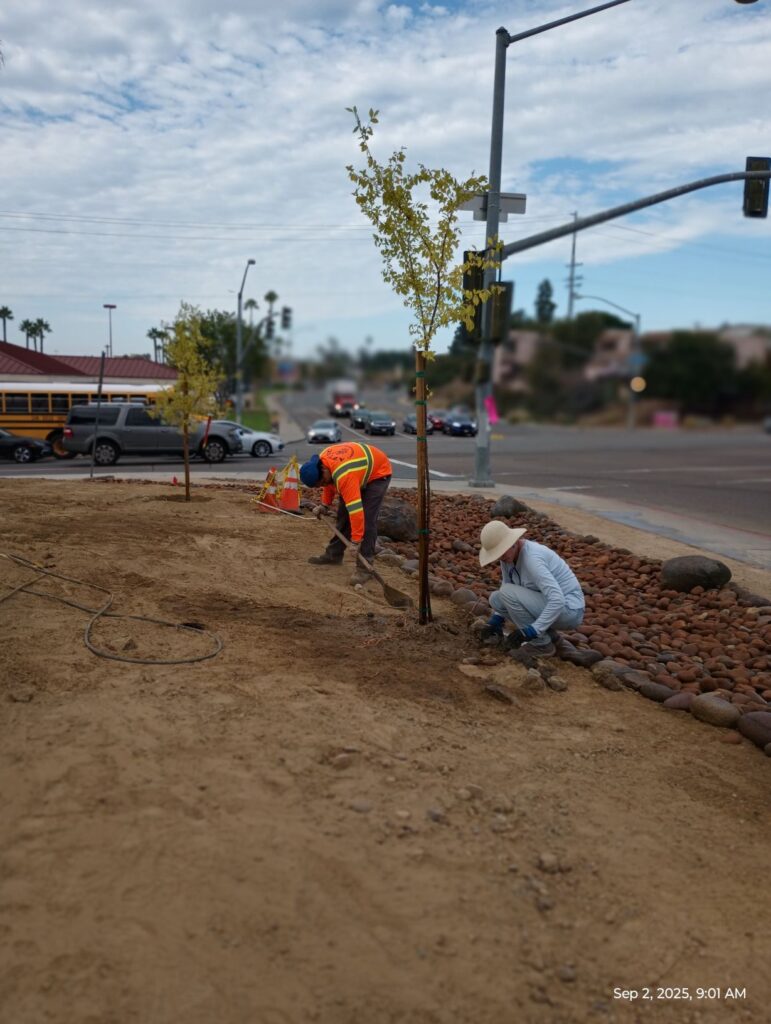 Five trees planted on Tuesday, mulch completed on Wednesday. Everyone who needed to approve, approved!