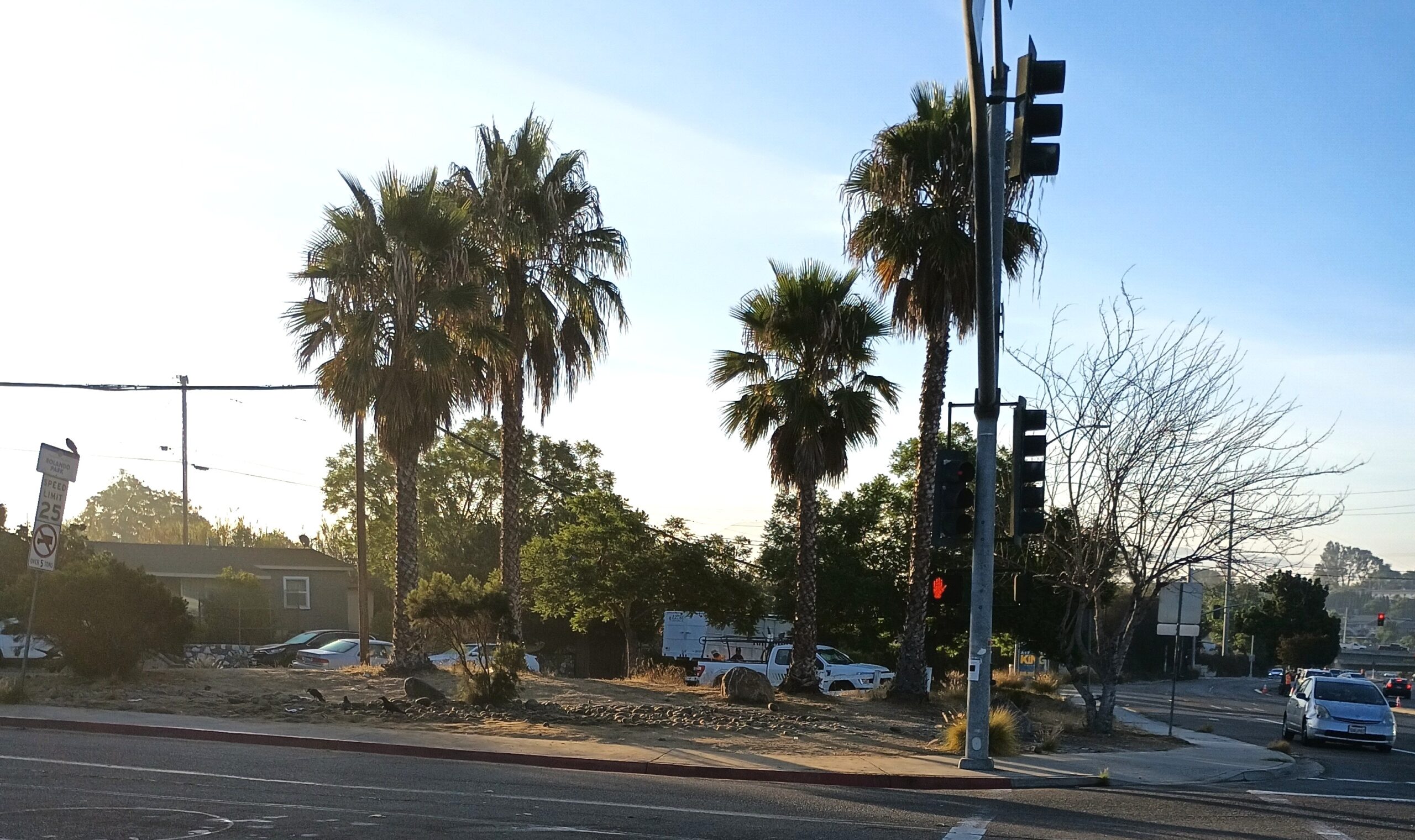The diseased mulberry at the corner of the intersection is also gone. All of the other trees are staying (the palm trees might be removed at a later time).