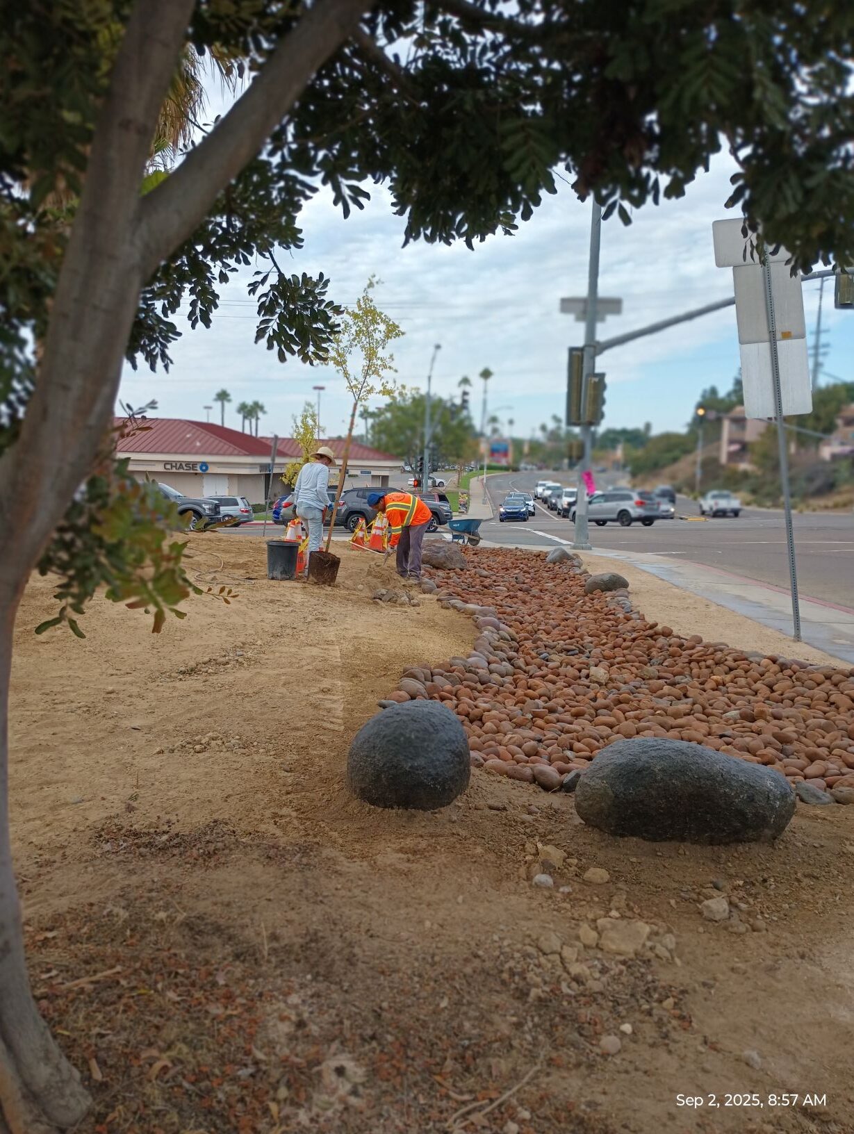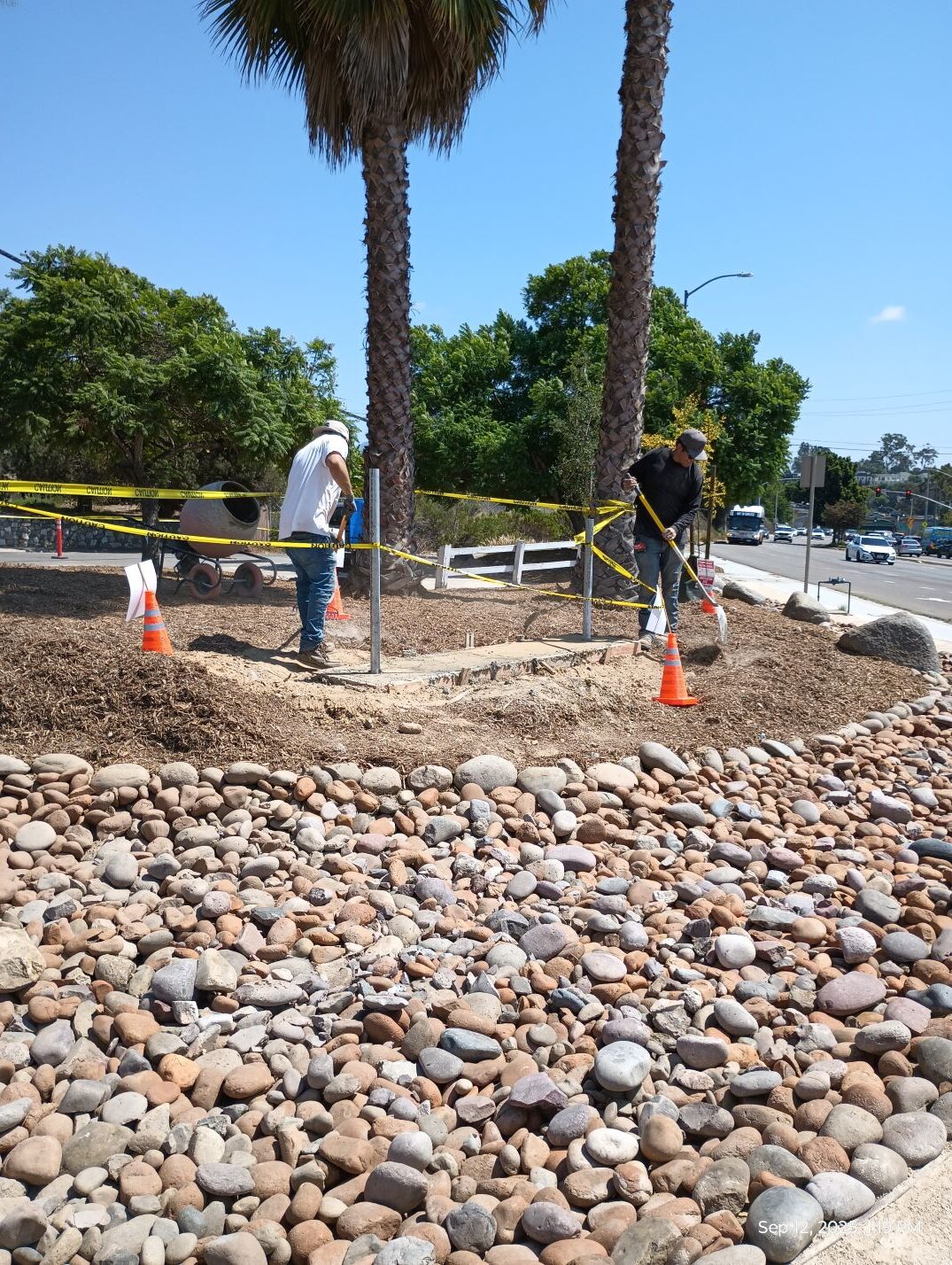 The schedule has been slightly changed; the trees will be planted on Tuesday and mulch goes down on Wednesday. After that, city inspectors will be back to give final approval on the landscaping part of this project and work can then start on the monument sign.