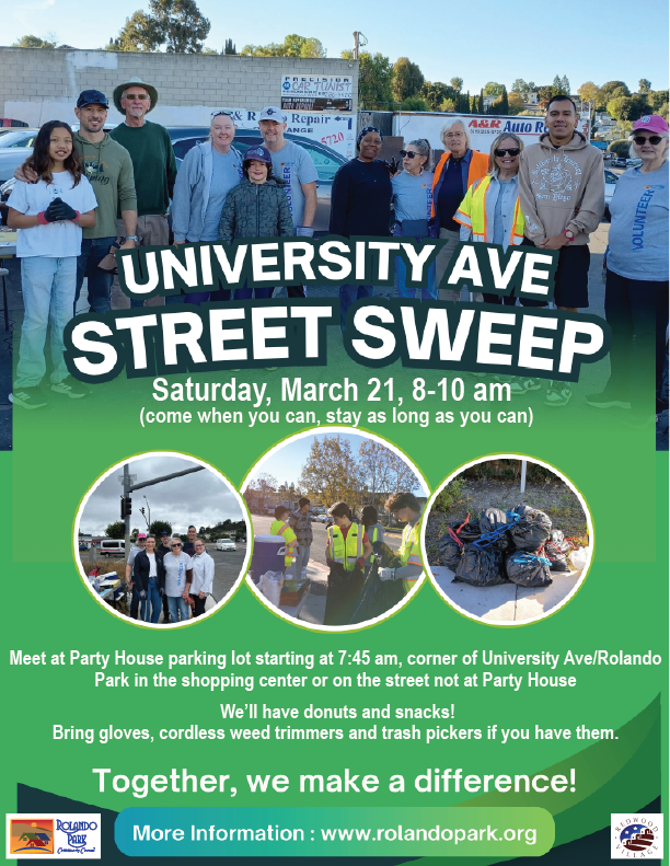 Our first University Ave cleanup in 2026. Meet at Party House parking lot starting at 7:45 am, University Ave/Rolando Blvd.